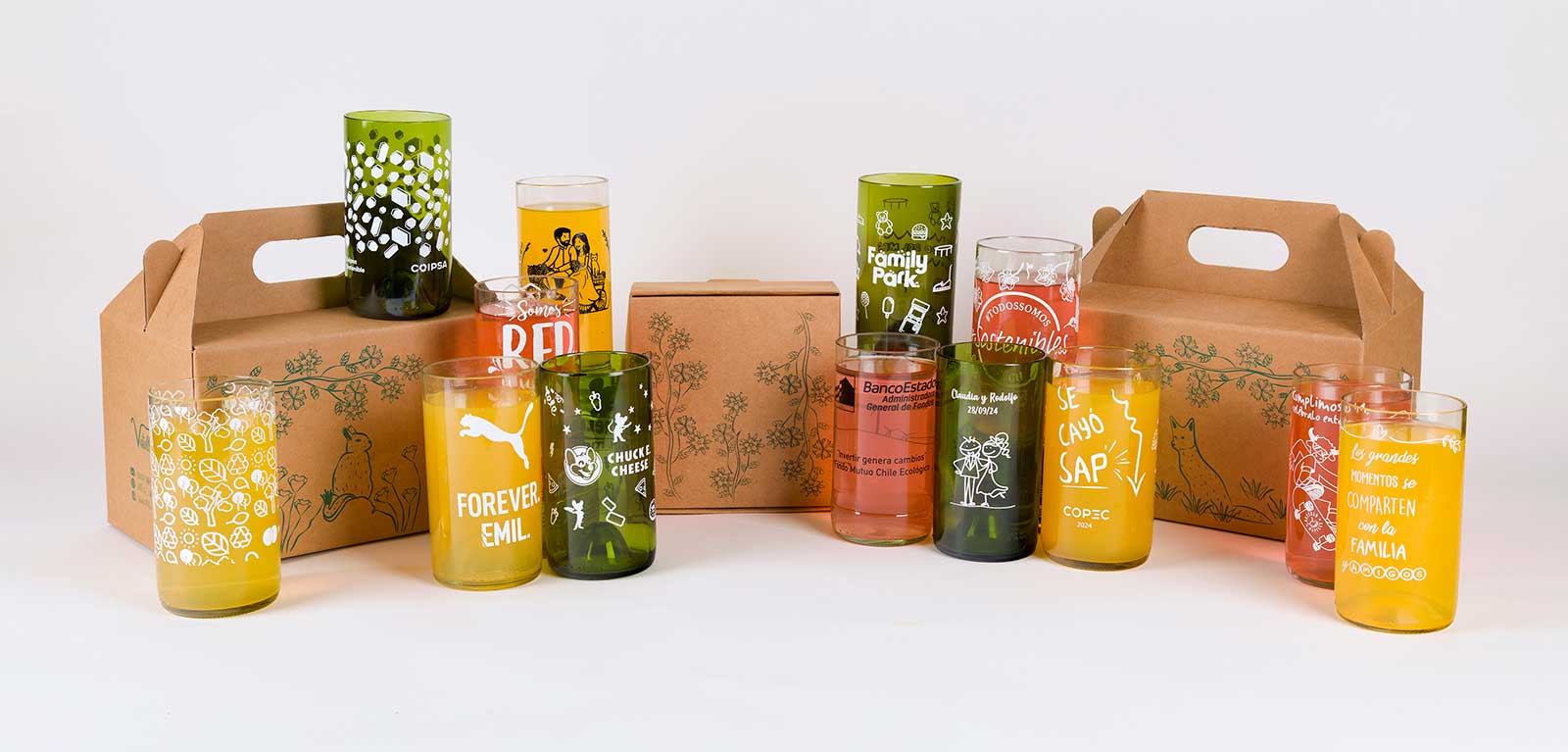 Nuestros vasos reciclados se le aplica con la técnica de serigrafÃa un estampado con diseños modernos y elegantes que se adaptan a todos los estilos y gustos.